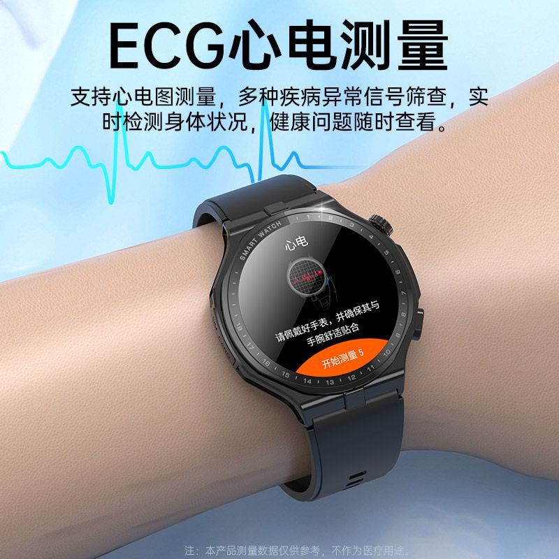 腕上健康管家,ECG心电检测,蓝牙通话,尿酸血脂监测,无创血糖监测,精准血压体温,红光真血氧检测,SOS一键呼救,远程关爱健康,多种运动模式