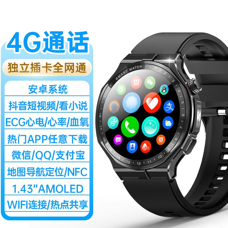 AD03新款4G通话血压睡眠血氧定位心率SOS高清远程关爱NFC智能手表